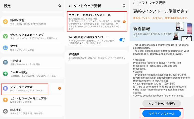 テキストを送信しても受信トレイから消えてしまう問題の背景には、古いAndroid OSのファームウェアが原因である可能性があります。以下の手順を参考にして、携帯電話を最新のAndroid OSにアップデートしてください。