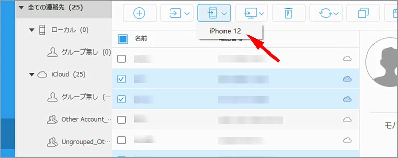 iTransferの素晴らしい機能の1つは、複数のiOSデバイスを同時に接続し、それらの間で直接ファイル転送やデータ同期ができることです。類似のiOSデータ転送ソフトとは異なり、iTransferは一度コンピュータにデータをエクスポートしてから別のiOSデバイスに転送する必要がありません。以下では、例としてiPhoneから別のiPhoneに連絡先を転送します。