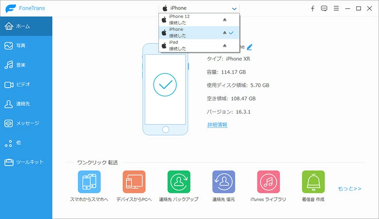 - iPhoneにアクセスしコンテンツを自由に管理