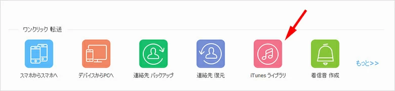 - iPhoneをソフトと接続し、ホーム画面から「iTunesライブラリ」を選択します。