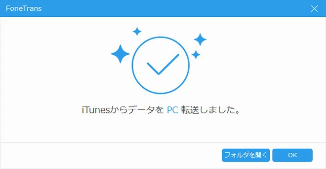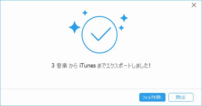 - あとはソフトが音楽をiTunesにコピーするのを待つだけで、次のような画像が表示されたら、iPhoneの音楽がiTunesに正常にエクスポートされたことになります。