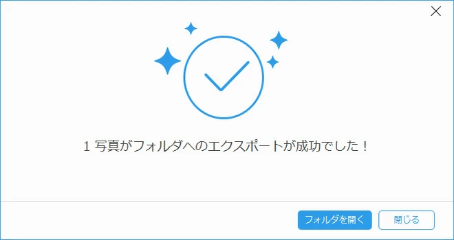 - あとはソフトが写真をローカルフォルダにコピーするのを待つだけで、次のような画像が表示されたら、iPhoneの写真がパソコンに正常にエクスポートされたことになります。