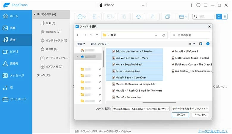 「開く」をクリックすると、ソフトはパソコンからiPhoneに直接曲を入れます。