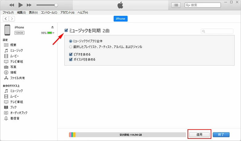手順 4. パソコンのミュージックをiPhoneに同期した後