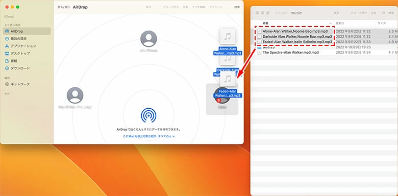 お使いのコンピュータはAirDropが搭載したMacの場合、AirDrop(エアドロップ)を使ってコンピュータの曲をiPhoneに共有することができます。