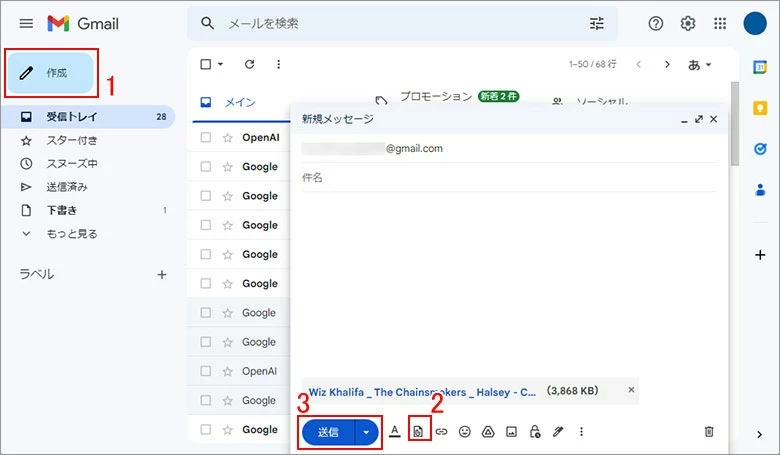 ワイヤレスの方法で音楽をパソコンからiPhoneに転送したいが、パソコンのBluetoothが無効である場合、またはAirDropを使用できない場合は、電子メールの添付ファイルを使って転送するという選択肢もあります。