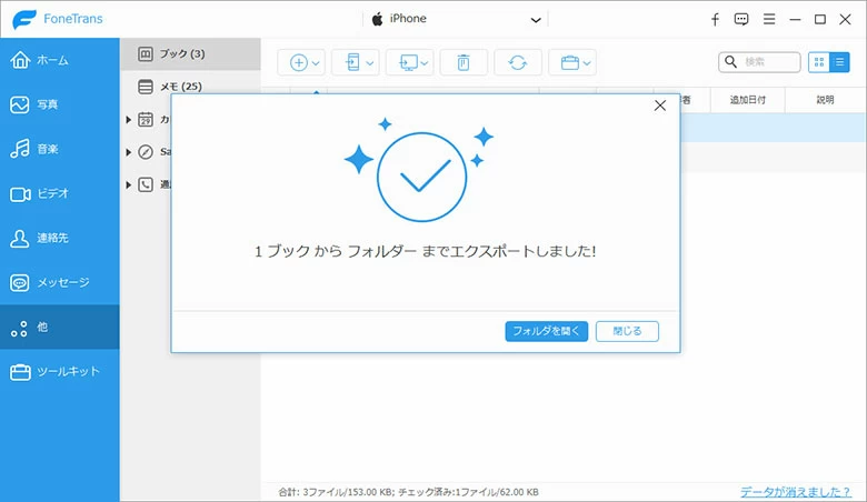 - iTunesを使用せずにiPhoneのデータをパソコンに復元することができます。