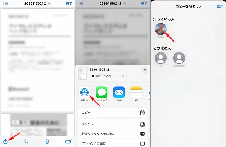 AirDropを使えば、Apple製品間で写真、動画だけでなく、PDFを含む各種ファイル、連絡先、位置情報など、さまざまなデータの共有を簡単に行えます。ただし、AirDropはApple製品に搭載されているApple独自の機能なので、Windowsコンピュータとのファイル共有には使えません。Windows PCの場合は、次の方法へお進みください。