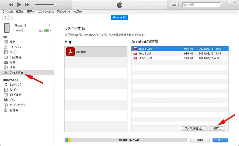 iTunesを使ってパソコンにiPhoneのPDFを転送