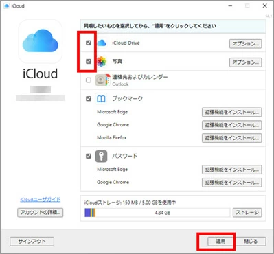 - 同期したい機能を選択または選択解除して、「適用」をクリックします。