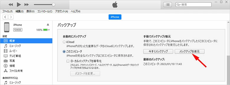 iTunesなどでファイルを復元することも可能ですが、以前のバックアップがある場合、iPhoneのデータが以前のバックアップによって上書きされ、データ損失となる可能性があります。