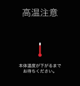 十分なバッテリー残量があっても、動作温度が原因となってiPhoneが勝手にシャットダウンしている可能性もあり、その場合は下のスクリーンショットのように、画面上に温度に関する警告が表示されます。デバイスを復活させるには、シンプルにデバイスの動作温度が0º~35º C (32º~95º F)という問題のない範囲に収まるようにします。