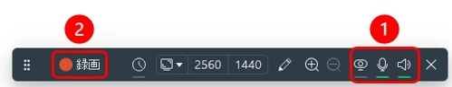 ②「録画」ボタンをクリックします。録画を停止するには同じ位置のボタンを再度クリックします。