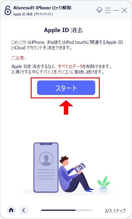 iPhone Unlockerを使ったAppleIDの削除はとても簡単です。基本的には画面の指示に従って操作するだけでApple IDの削除が完了します。