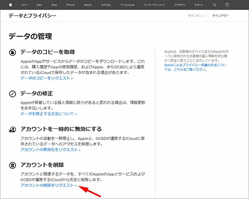 公式サイトでアカウントの削除を申請しても、デバイスからサインアウトしないと、アカウントに関連付けられたデータがデバイスに残ります。