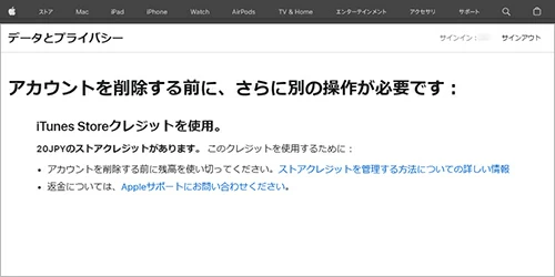 iTunes Storeクレジットを利用している場合は、ストアクレジット残高が使い切ったことを確認するか、Appleサポートに返金についてお問い合わせください。そうでない場合は、アカウントを削除できない場合があります。