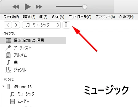 1.一度端末を接続したら、iTunesは自動的に開きます。もし開かなかったらiTunesのアイコンをダブルクリックして手動で開きましょう。iPhoneが認識されたら、上部左側に表示されますので、デバイスのアイコンをクリックしましょう。