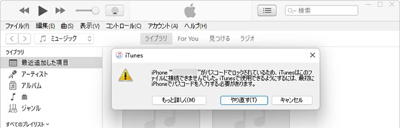 初めてiTunesに接続するときは、iPhoneの画面で「信頼パソコン」をタップしなければ、iTunesでiPhoneを管理できません。ただし、画面が反応せずに操作できない場合は、iPhoneをリカバリーモードにして元に戻す必要があります。