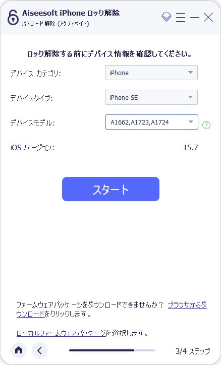 4. 「スタート」ボタンをクリックすると、パスコードなしでiPhone SEをリセットするためにiOSファームウェアのダウンロードが開始されます。