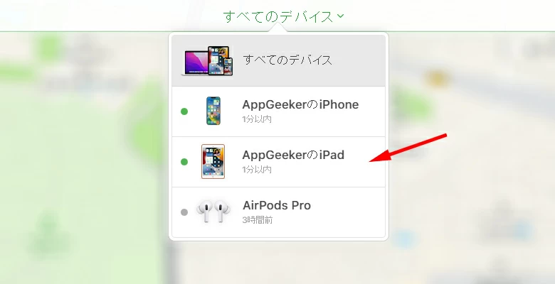 2. 次のページで、画面上部にある「すべてのデバイス」をクリックします。すると、すべてのAppleデバイスのリストが表示されます。