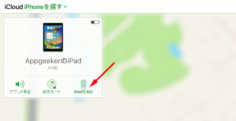Apple IDとパスワードを使用して、iCloudでiPadをリモートで消去します。