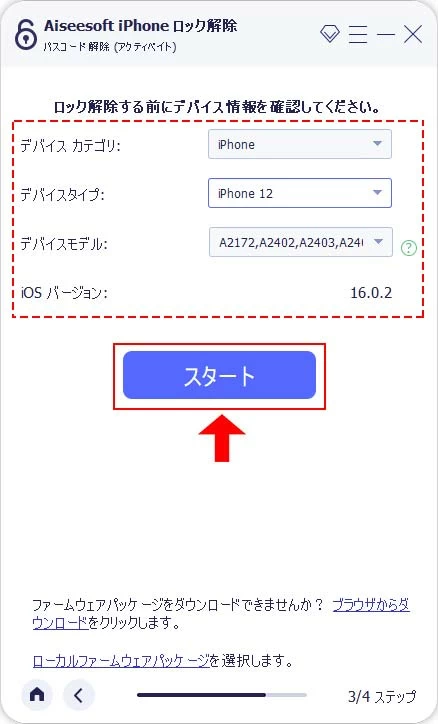 「スタート」ボタンをクリックして先に進みます。ソフトはAppleサーバーに接続し、iPhone 12に一致するファームウェアのダウンロードを開始します。
