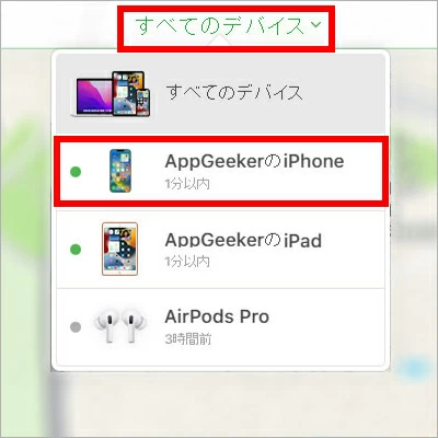 iCloudの「すべてのデバイス」リストからiPhone 12を見つけます。
