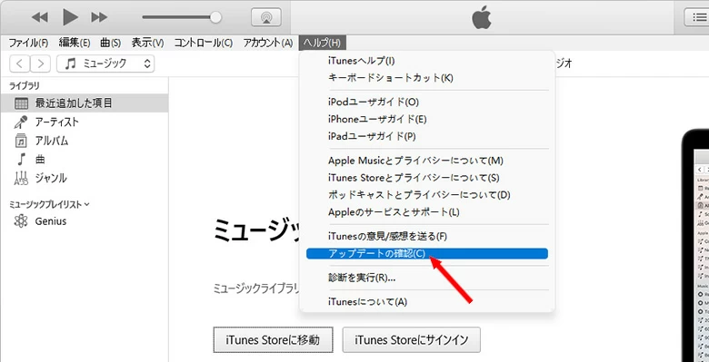 まず、パソコン で iTunes を開きます。最新バージョンの iTunes を使用していることを確認する必要があります (「ヘルプ」>「アップデートの確認」)。