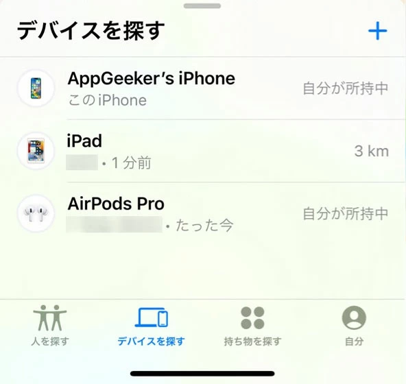 2. 「探す」アプリを開き、下部にある「デバイス」をタップします (iCloud サイトでは上部にある「すべてのデバイス」をクリックします)。