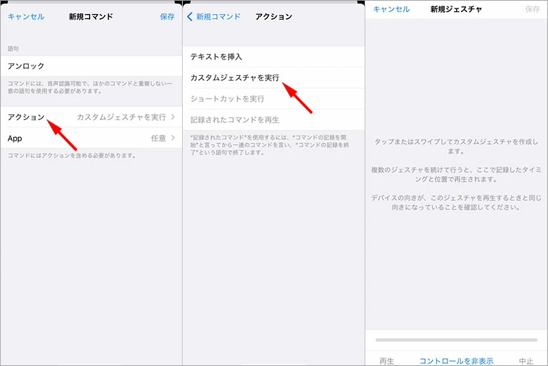 - 「カスタムジェスチャを実行」を選択し、ジェスチャ画面に入ります。