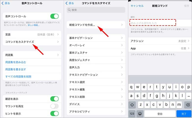- 音声コントロールをオンにしたあとに「コマンドカスタマイズ」を選択します。